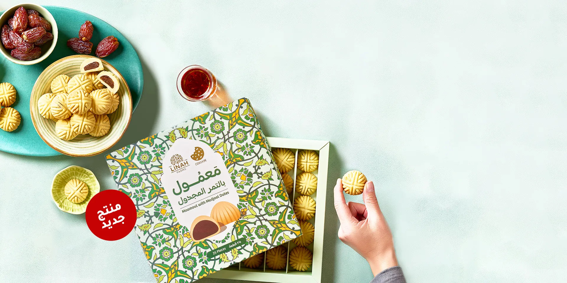 بالتعاون مع The Cookievore، نقدم لكم المعمول بشكل مختلف تمامًا. محشي بأجود أنواع تمر المجدول من مزارع لينة فارمز، وسمن طبيعي ١٠٠٪، و مخبوز بعناية لحد ما يبقى دهبي، طري، و طعمه ولا...